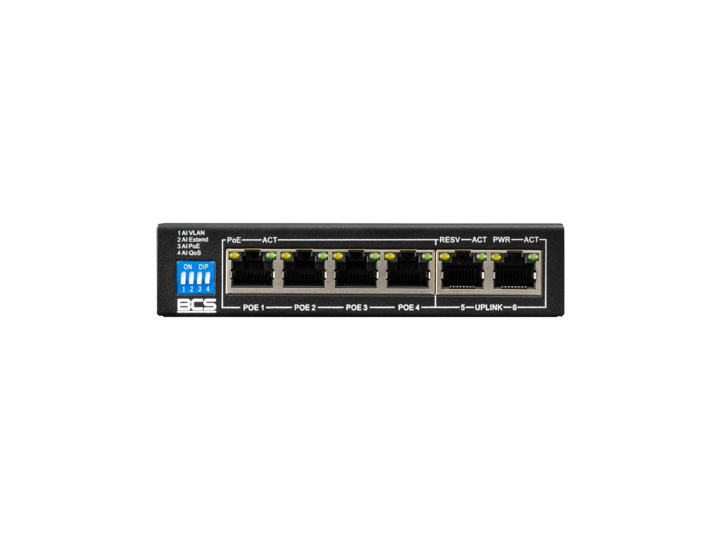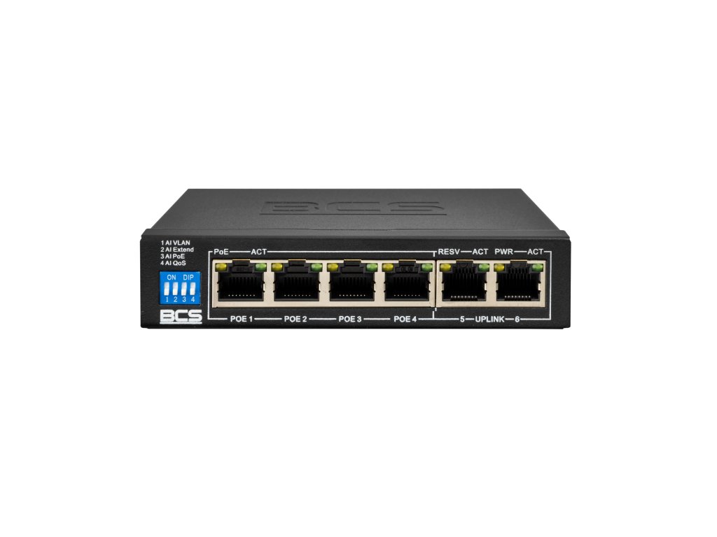 BCS BASIC switch PoE, 4x port 10/100Mbps, 2x UPLINK 10/100Mbs
