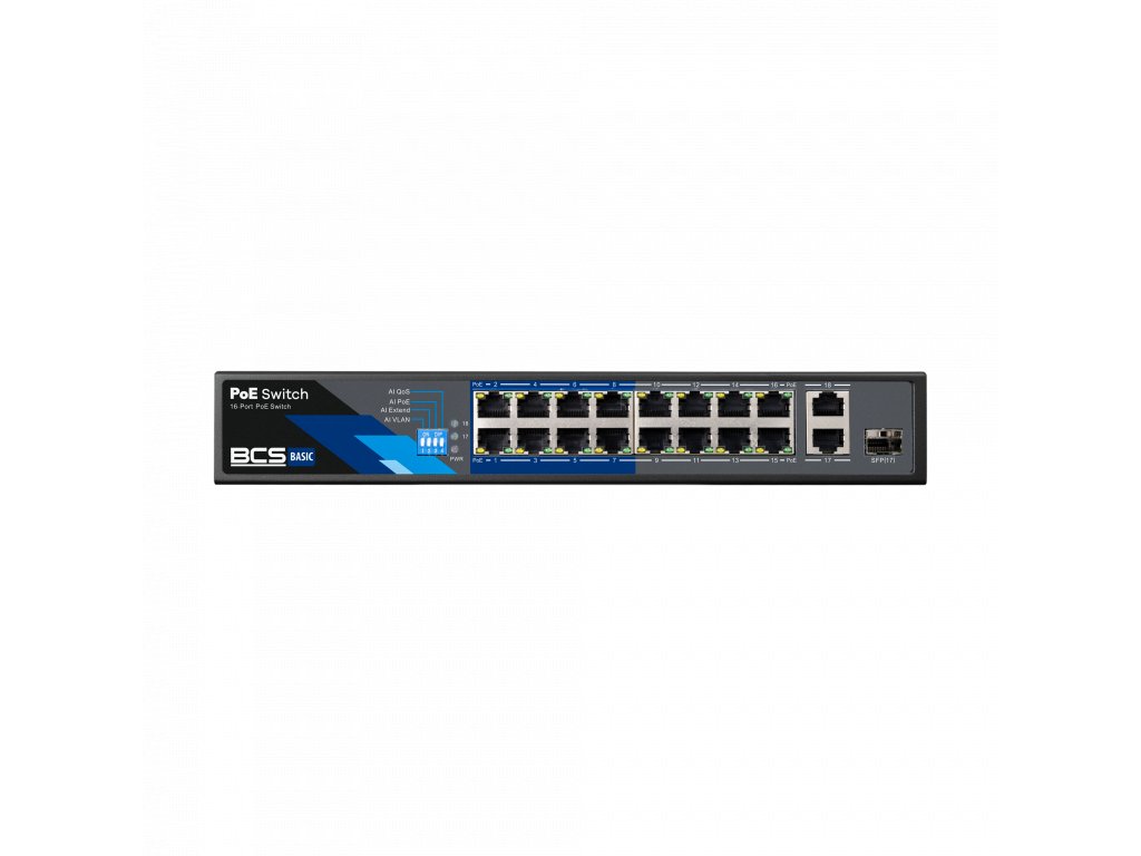 BCS BASIC switch PoE 16x port 10/100Mbps, 2x UPLINK 10/100/1000Mbps