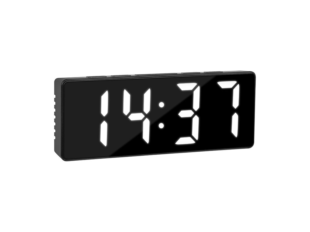 sú hodiny vybavené prehľadným 4-bitovým LED displejom, ktorý okrem hodín a minút zobrazuje aj aktuálny dátum – deň, mesiac a rok. Je to vynikajúci nástroj na každodenné použitie doma aj v kancelárii. Displej pracuje v 12/24-hodinovom formáte, čo umožňuje používateľovi jednoducho prispôsobiť zobrazenie svojim preferenciám.