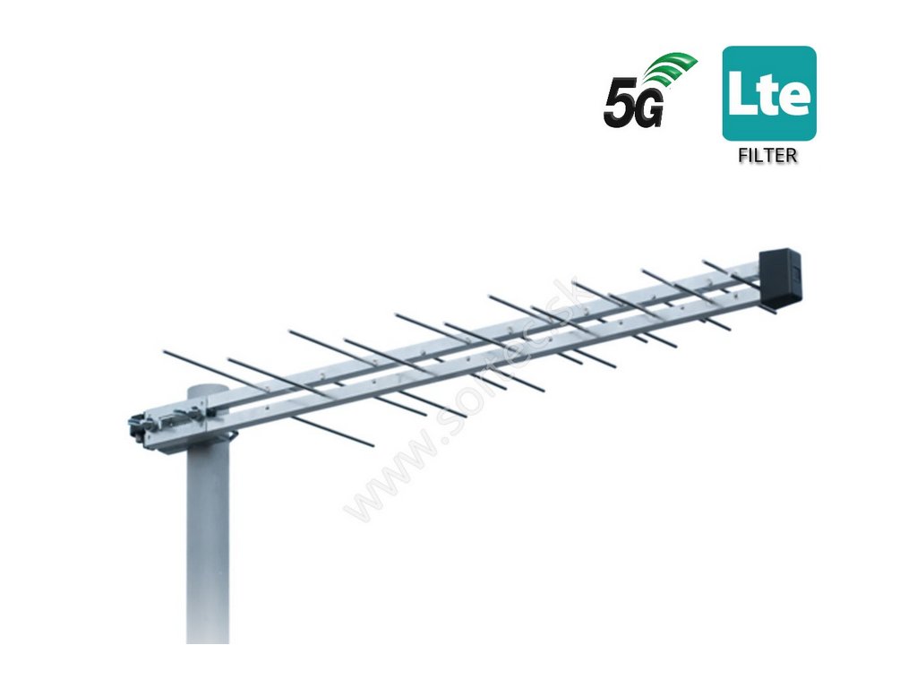 - Má zabudovaný LTE filter 700 5G čo znamená že potlačí signály o -20 dB kanály 49-69(698-862 MHz) využívané mobilnými operátormi, ktoré môžu spôsobiť rušenie prijímaných signálov pre televíziu.