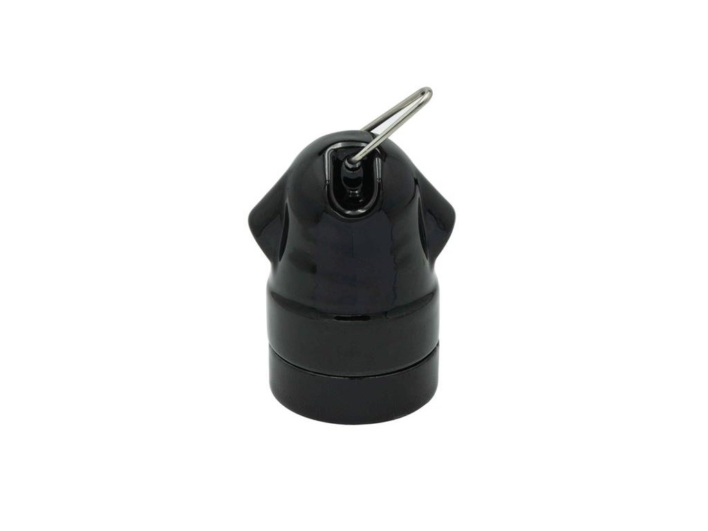 Kľúčové slová : objímka na žiarovku, keramika, čierna, E27, závesné osvetlenie, žiarovka E27, uťahovanie tienidla, krúžok, industriálny štýl, loftový štýl.