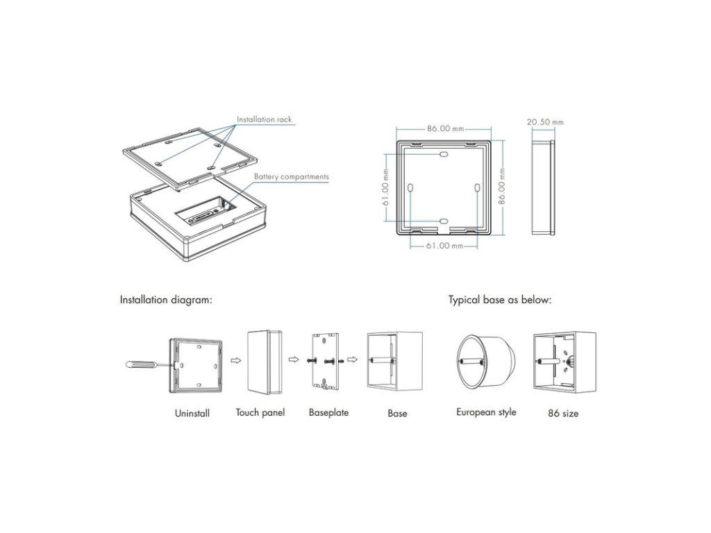 • praktická montáž na akýkoľvek povrch bez potreby montážneho otvoru (elektroinštalačnej krabice), dá sa priamo na stenu inštalovať pomocou sktutiek alebo nalepiť pomocou obojstrannej lepiacej pásky
