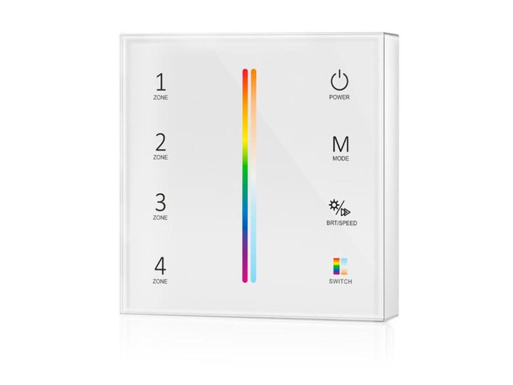 - • 4-kanálový nástenný diaľkový ovládač pre ovládanie farebných RGB+CCT LED pásov