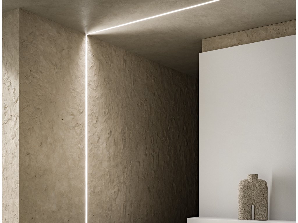 Konečný výsledok spočíva v inštalácii podobného LED profilu so zapusteným MIDI krytom medzi dosky a následnom omietnutí.