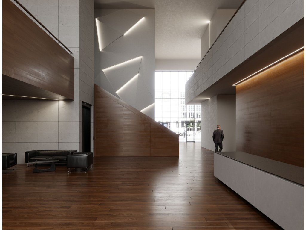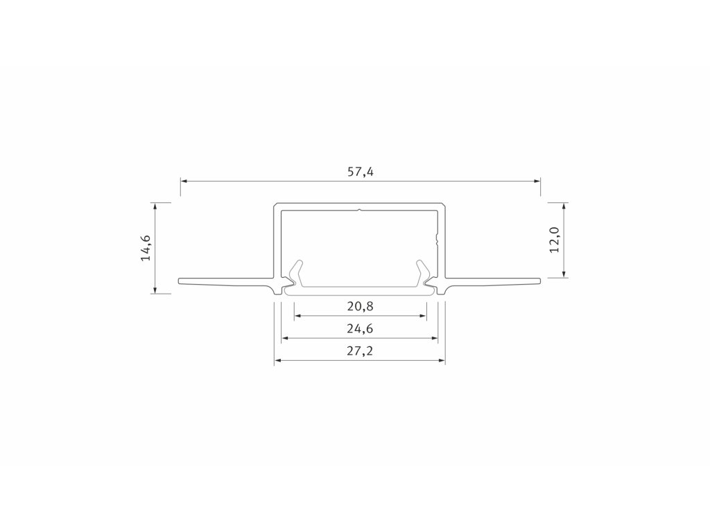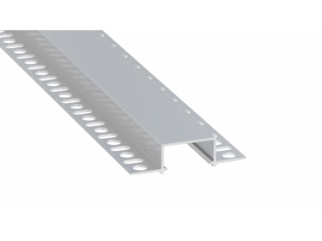 Konečný výsledok montáže profilu HIRO s DVOJITÝM krytom, drážka namontovaná medzi dvoma sadrokartónovými doskami s omietnutou povrchovou úpravou