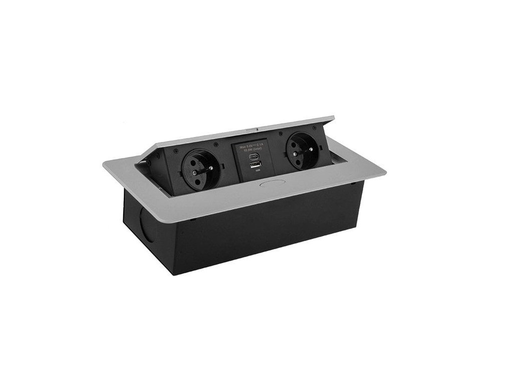 Nábytková zásuvka zápustná DL KOMBI BOX 2xzásuvka 230, 1xUSB/1xUSB-C,strieborná (hliník)