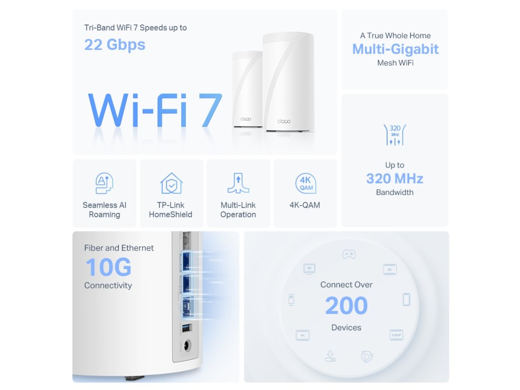 BE65 má tiež jeden SFP+ port, ktorý umožňuje prevod optického signálu na RJ-45 a má rýchlosť 10 Gb/s. Ďalšou výhodou tohto systému je vysoká úroveň zabezpečenia s podporou štandardov WPA-PSK, WPA2-PSK a WPA3, čo zaisťuje bezpečné a spoľahlivé pripojenie k internetu.