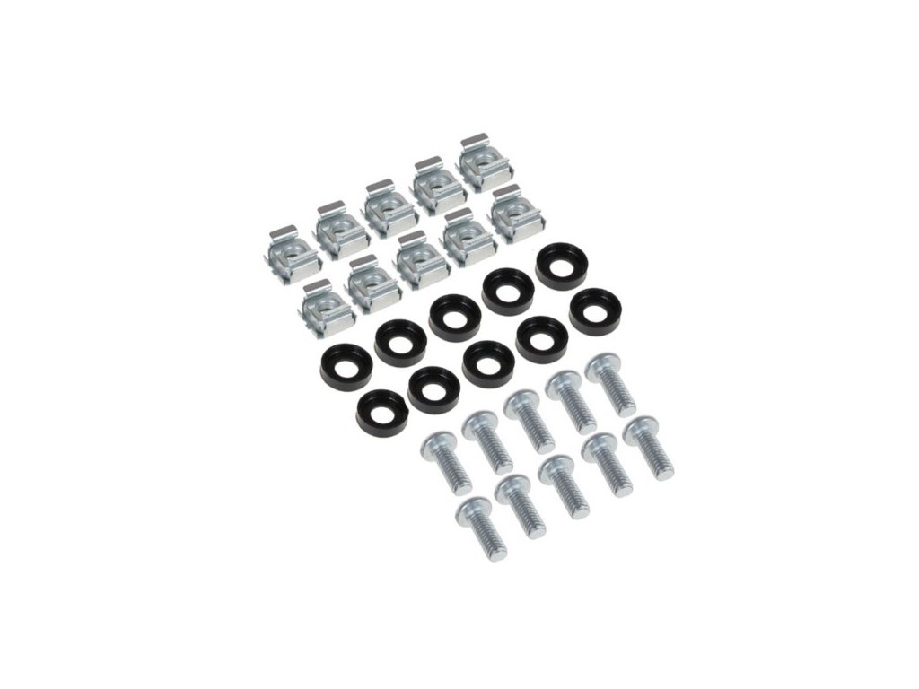 Montážny prvok pre IT skrine - sada desiatich skrutiek (závit M6), klietkových matíc a plastových podložiek.