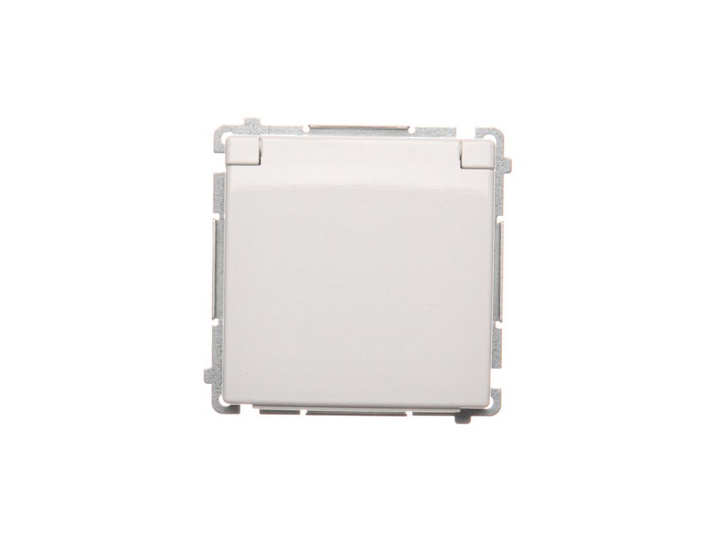 SIMON Basic zásuvka 1x s krytím IP44 - klapka vo farbe krytu biela 16A, BMGZ1B.01/11