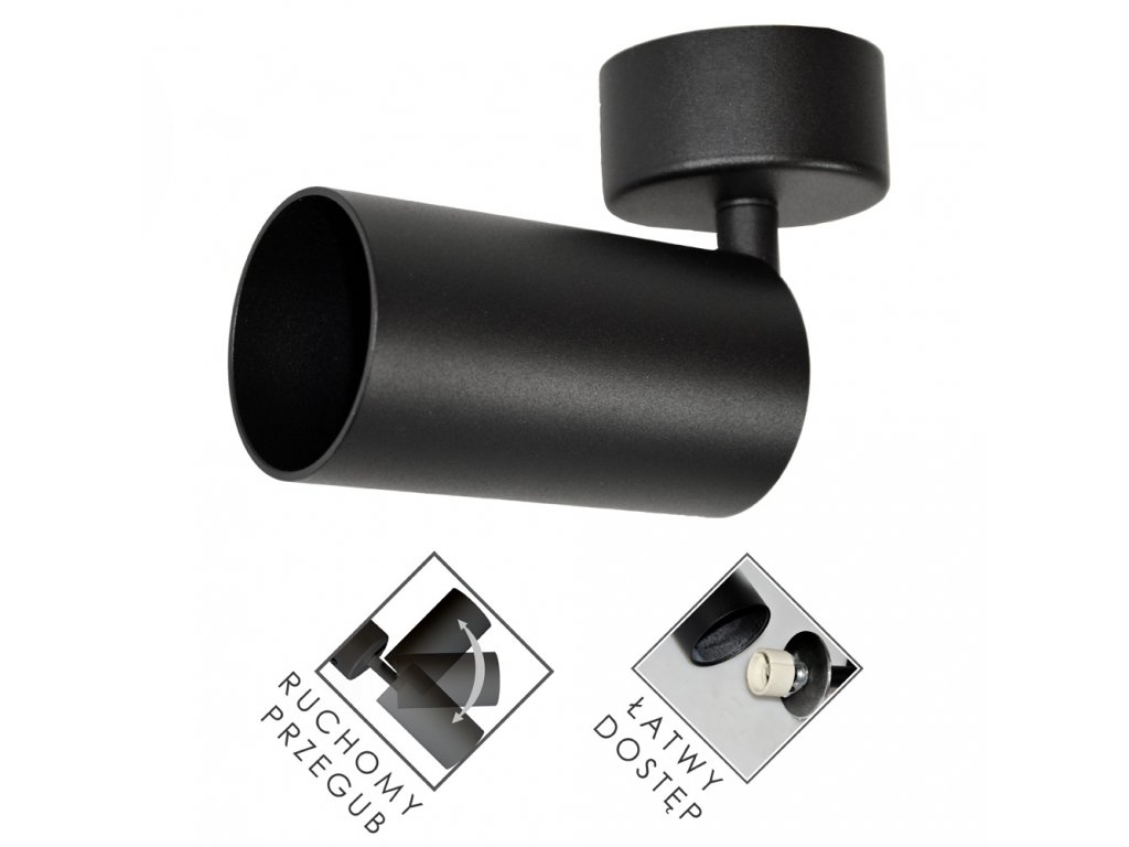 Svietidlo bodové, prisadené MR16/GU10, FARGO, válec, čierne