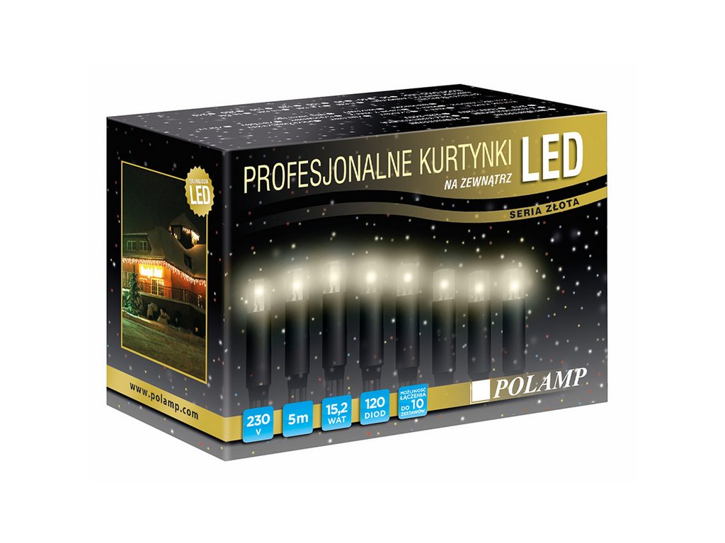 Trvanlivejšia a poveternostne odolnejšia verzia závesov. Môžu byť použité na zdobenie striech, okien, fasád a akéhokoľvek usporiadania priestorov. Vďaka kvalitným diódam majú veľký vyžarovací uhol. Svietidlá je možné používať pri nízkych teplotách a vysokej vlhkosti vzduchu. Vďaka použitiu LED technológie vyžarujú minimálne teplo. Šnúry sú ukončené patentovaným konektorom, ktorý umožňuje jednoduché a rýchle pripojenie až 10 súprav na jeden napájací kábel.Tmavý kábel
